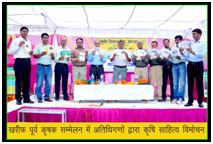 As per directives received from the ICAR, New Delhi Krishi Vigyan Kendra organized Pre Kharif & Rabi Sammelan for the progressive farmers, allied department of state government officials, district administration and University Officials participated in the Sammelan. More than 1000 farmers and other dignitaries benefitted through latest Agricultural and Allied subject technologies, Organic farming, Scientific animal husbandry management, Soil Health, Integrated Pest Management, Diversified farming such as Horticulture, Apiculture, Protected cultivation, etc. During this sammelan the participants benefitted through Exhibition on latest technology of the agriculture.
